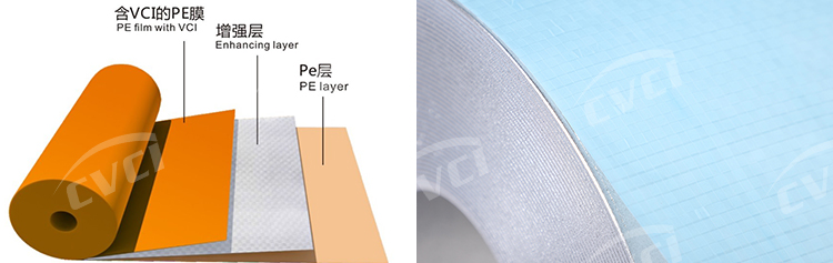 織物增強型防銹膜是一項專利產(chǎn)品,滿足國際綠色環(huán)保要求,具有高強度、耐戳穿、耐撕裂,全塑結(jié)構(gòu),安全環(huán)保、可印刷等性能。