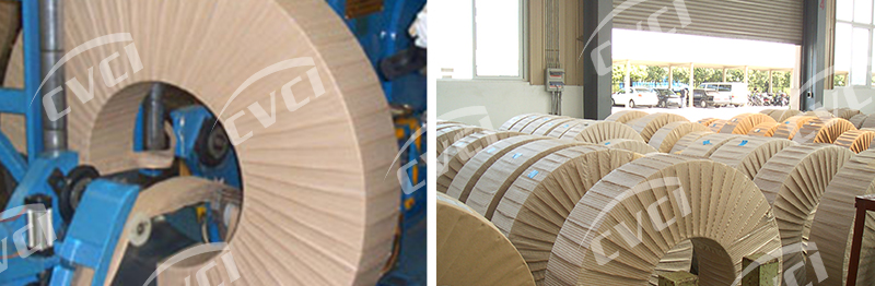 鋼板在剪切配送過程中,一般會根據(jù)客戶要求分切成不同寬度的窄條帶,通過短途運(yùn)輸至目的客戶。在貯運(yùn)期間,受環(huán)境影響易發(fā)生銹蝕和機(jī)械損傷,故需要防蝕包裝。皺紋夾絲復(fù)合紙通過其獨特的基材和良好的阻隔性可以防止鋼板在貯運(yùn)過程中銹蝕的發(fā)生;同時該產(chǎn)品具有一定的伸長率,尤其適合于窄帶板材的纏繞包裝 。