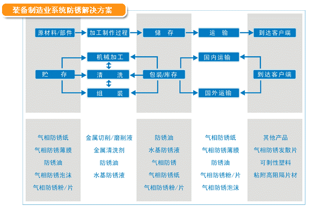 裝備制造業(yè)從原材料貯存,到加工制造、裝配、運(yùn)輸,每一個(gè)環(huán)節(jié)都會(huì)面臨銹蝕問(wèn)題。該領(lǐng)域?qū)τ诜冷P產(chǎn)品具有需求范圍廣、個(gè)性化要求高、技術(shù)支持需求明顯等特點(diǎn)。我們按客戶材質(zhì)、工藝和儲(chǔ)運(yùn)要求,進(jìn)行系統(tǒng)的防銹防護(hù)解決方案。已成功完成小到微型電機(jī)、大至成套工程機(jī)械的防銹防護(hù)方案設(shè)計(jì)和多年驗(yàn)證工作。為我國(guó)裝備制造業(yè)發(fā)展保駕護(hù)航!